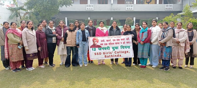 Bathind News: SSD Girls College Bathinda ਵਿਖੇ ਪ੍ਰਿੰਸੀਪਲ ਡਾ. ਨੀਰੂ ਗਰਗ ਦੀ ਅਗਵਾਈ ਅਧੀਨ ਪ੍ਰੋਗਰਾਮ ਅਫਸਰਾਂ ਡਾ. ਸਿਮਰਜੀਤ ਕੌਰ ਅਤੇ ਮੈਡਮ ਗੁਰਮਿੰਦਰ ਜੀਤ ਕੌਰ ਦੀ ਸਰਪ੍ਰਸਤੀ ਹੇਠ ਐਨ.ਐਸ.ਐਸ. ਯੂਨਿਟਾਂ ਅਤੇ ਰੈੱਡ ਰਿੱਬਨ ਕਲੱਬਾ ਵਲੋਂ 12 ਜਨਵਰੀ 2026 ਰਾਸ਼ਟਰੀ ਯੁਵਾ ਦਿਵਸ ਮਨਾਇਆ ਗਿਆ । ਇਸ ਵਿੱਚ ਕਾਲਜ ਦੇ 30 ਵਲੰਟੀਅਰਾਂ ਅਤੇ ਅਧਿਆਪਕਾਂ ਨੇ ਹਿੱਸਾ ਲਿਆ ਇਸ ਮੌਕੇ ਖੁਸ਼ੀ ਸਿੱਕਾ ਵਲੋਂ ਸਵਾਮੀ ਵਿਵੇਕਾਨੰਦ ਦੇ ਜੀਵਨ ਤੋਂ ਸਿੱਖਿਆ ਲੈਂਦੇ ਹੋਏ ਨੌਜਵਾਨਾਂ ਨੂੰ ਆਪਣੇ ਰਸਤੇ ਆਪ ਚੁਣਨ ਲਈ ਪ੍ਰੇਰਿਤ ਕਰਨ ਵਾਲੀ ਕਵਿਤਾ ਨੌਜਵਾਨ ਪੇਸ਼ ਕੀਤੀ ਗਈ। ਕਾਲਜ ਪ੍ਰਬੰਧਕ ਕਮੇਟੀ ਦੇ ਪ੍ਰਧਾਨ ਐਡਵੋਕੇਟ ਸੰਜੈ ਗੋਇਲ, ਜਨਰਲ ਸਕੱਤਰ ਵਿਕਾਸ ਗਰਗ ਅਤੇ ਪ੍ਰਿੰਸੀਪਲ ਡਾਂ ਨੀਰੂ ਗਰਗ ਨੇ ਐਨ.ਐਸ.ਐਸ. ਯੂਨਿਟਾਂ ਦੇ ਪ੍ਰੋਗਰਾਮ ਅਫਸਰਾਂ ਨੂੰ ਅੱਗੇ ਤੋਂ ਵੀ ਨੌਜਵਾਨਾਂ ਨੂੰ ਪ੍ਰੇਰਿਤ ਕਰਨ ਵਾਲੇ ਅਜਿਹੇ ਦਿਵਸ ਮਨਾਉਣ ਲਈ ਅੱਗੇ ਆਉਣ ਲਈ ਕਿਹਾ।